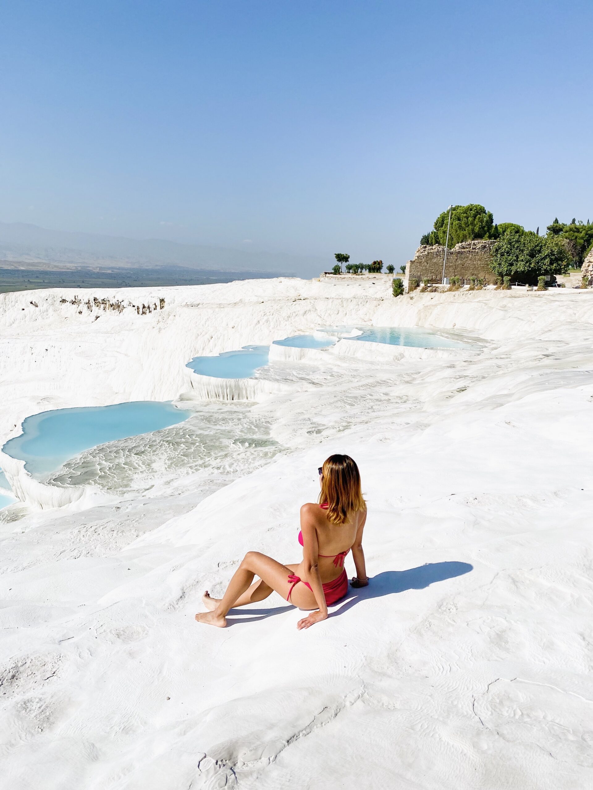 Hoy exploraremos uno de los paisajes más surrealistas del viaje: las terrazas de algodón de Pamukkale. Caminaremos descalzas sobre sus formaciones de piedra blanca y aguas termales, y luego subiremos a las ruinas de la antigua ciudad de Hierápolis. El teatro romano, la necrópolis y la piscina de Cleopatra te transportarán a otra época. Por la tarde, tomaremos un traslado de aproximadamente 4 horas hacia Kaş, un encantador pueblo costero de la Riviera Turca, donde pasaremos la noche.